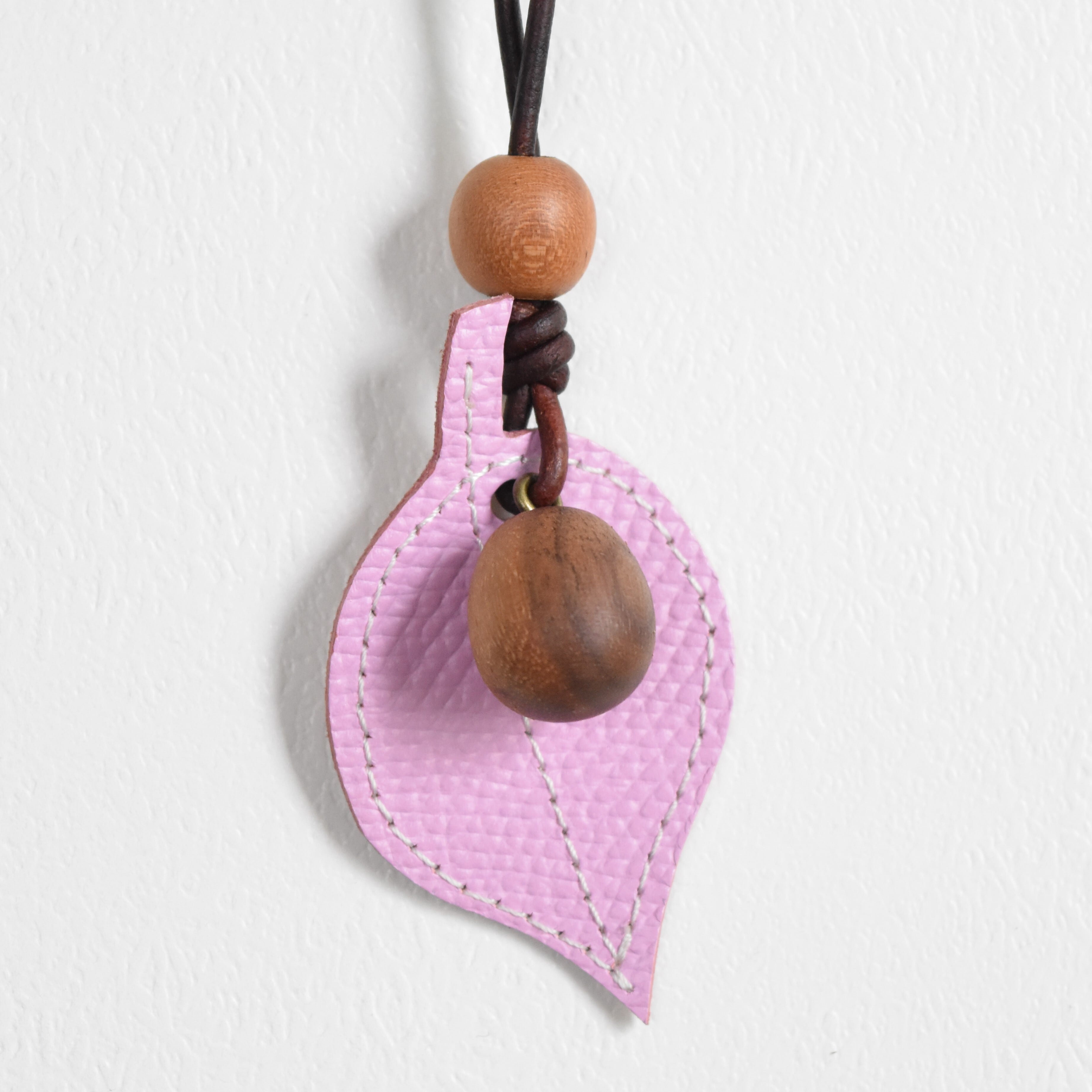 ペンダントトップにレザーの葉っぱを使用しました。これはRCW(らいちクラフトワークス)さんにお願いして作っていただいたものです。