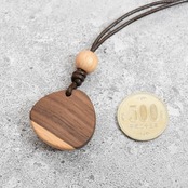 ペンダントトップは木の実をイメージした形で、色の違う木を挟んで接着しています。