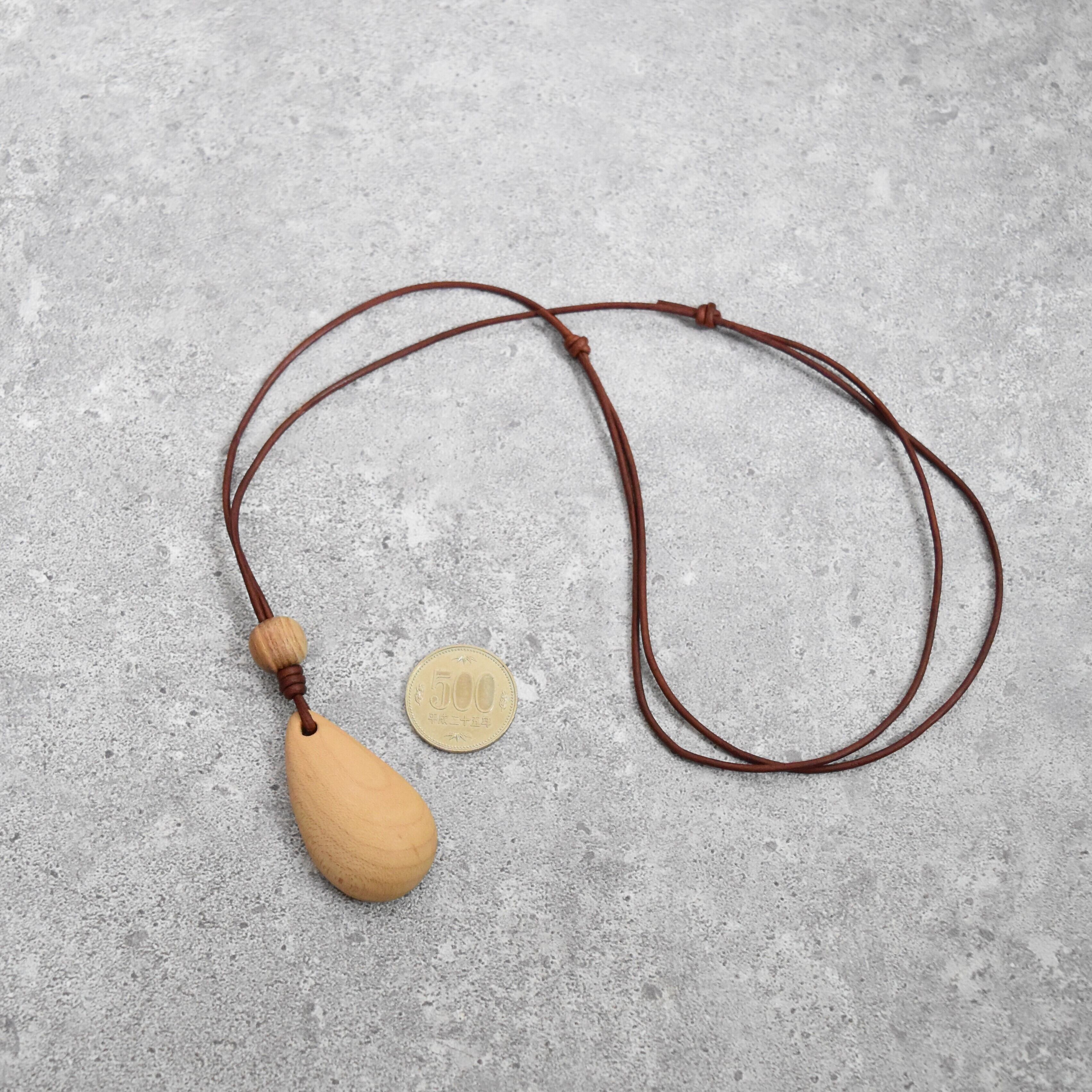 ペンダントトップは貝殻をイメージした形で、それぞれ木目がきれいに見えるように、ひとつひとつ違う形に削って作りました。